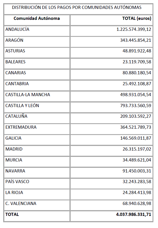 El MAPA, a través del Fondo Español de Garantía Agraria (FEGA), coordinó el pago de las ayudas directas por parte de las comunidades autónomas.