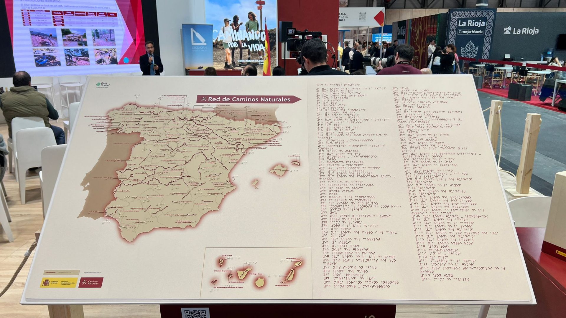 El expositor cuenta, además, con un mapa táctil de la Red de Caminos Naturales de España e información en "braille" para las personas con discapacidad visual.