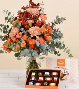 Chocolates Trapa, con motivo de su 135 aniversario, ha diseñado junto a Interflora un regalo denominado "Historia de amor" que consiste en un ramo de flores en tonos naranja -el color corporativo de la firma- y un estuche de sus Bombonísimos.