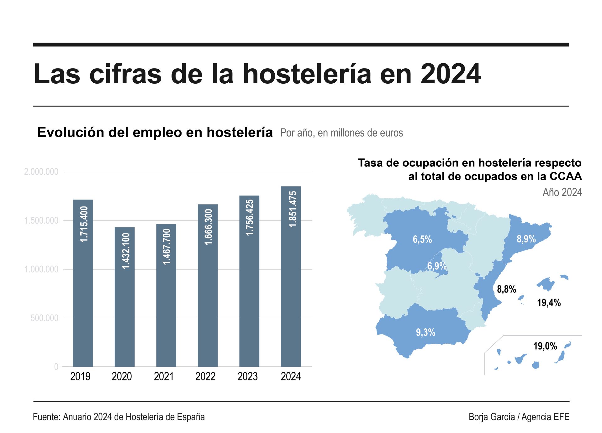 En general, la hostelería -restauración y alojamientos- cerrará el 2025 con aumento de la facturación media hasta septiembre del 4,7 % respecto a 2024, y en términos de rentabilidad se mantiene estable.