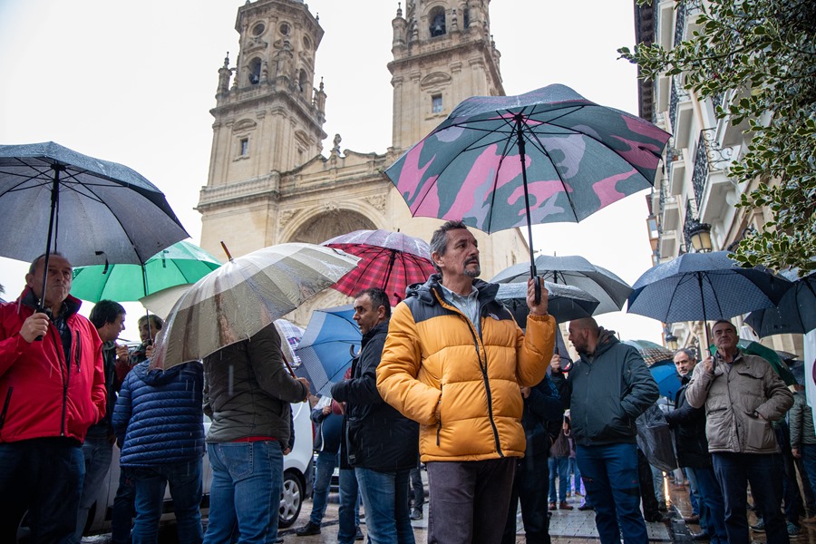 Los viticultores han acudido a la Plaza del Mercado de Logroño, donde los organizadores han optado por desconvocan estas movilizaciones por la lluvia que cae en Logroño y por los fallecidos en Valencia por la dana.