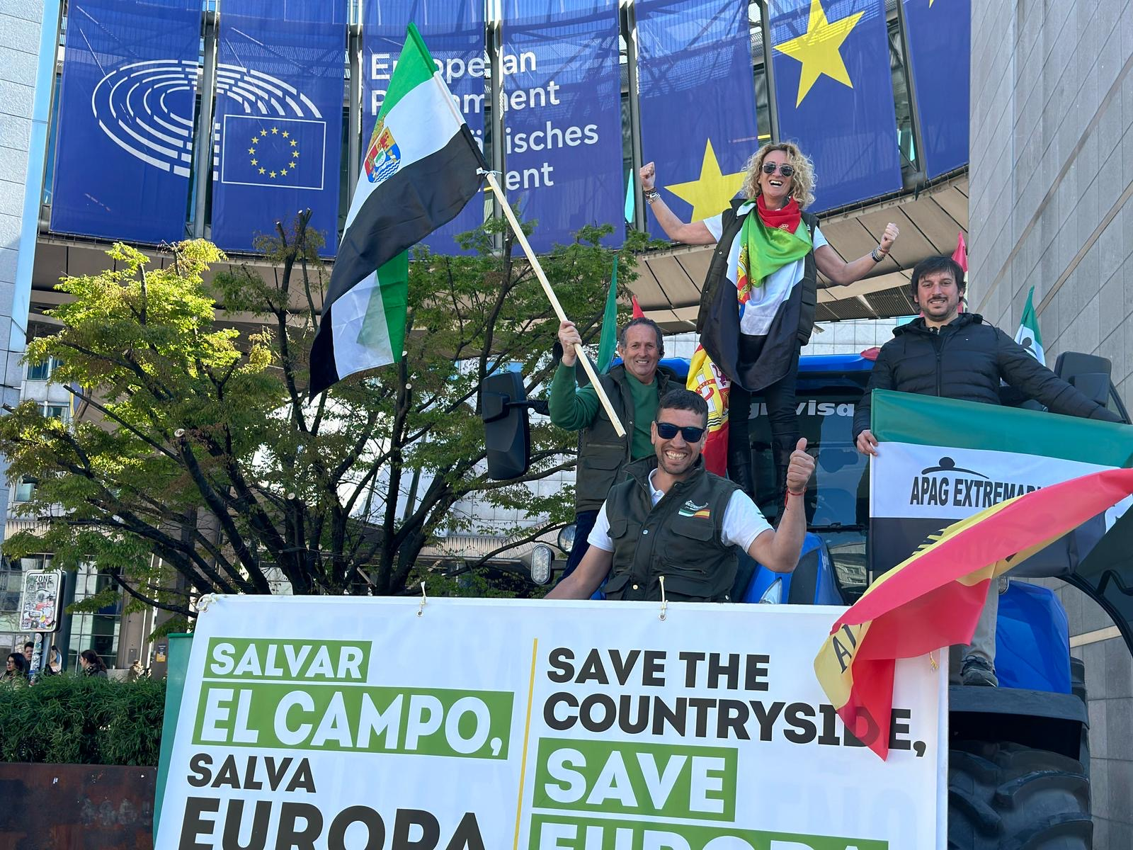 La tractorada organizada por APAG Extremadura Asaja, que salió de Mérida el 1 de abril, ha culminado su recorrido este lunes en Bruselas, donde acudió para trasladar a eurodiputados españoles sus reivindicaciones y se ha reunido con el expresidente de la Generalitat de Cataluña Carles Puigdemont.